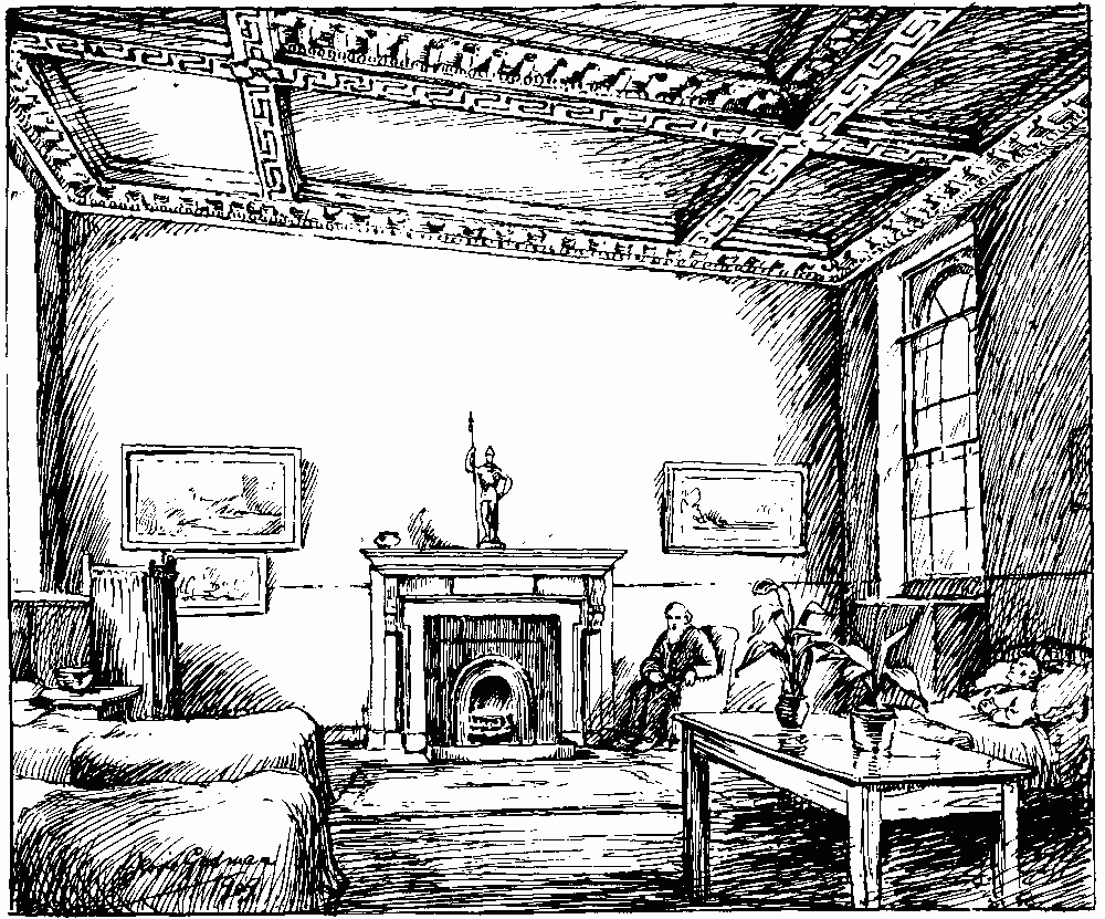 Walpole House, Chelsea: drawing room, preserved as Ward 7 of the Royal Hospital Infirmary in 1909. Image: Survey of London. |