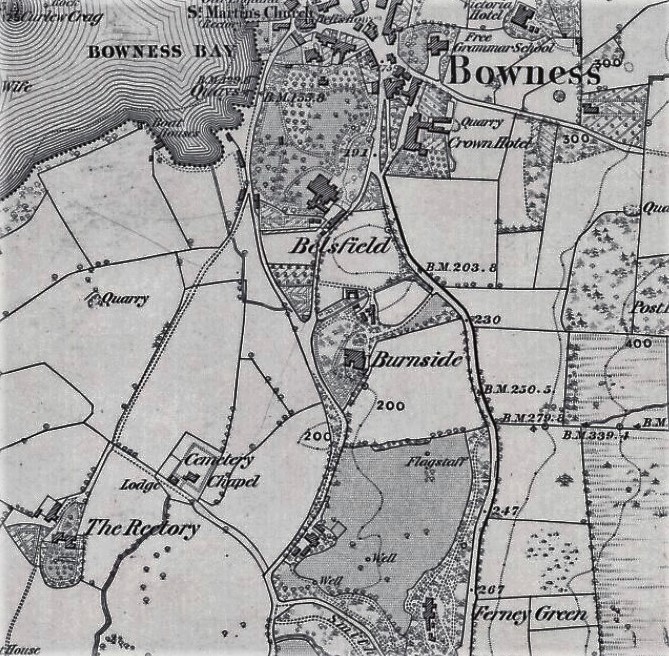 Burnside, Bowness-on-Windermere: this OS 6" map of the 1860s shows how the house was one of a string of villas in their own grounds around the town. |